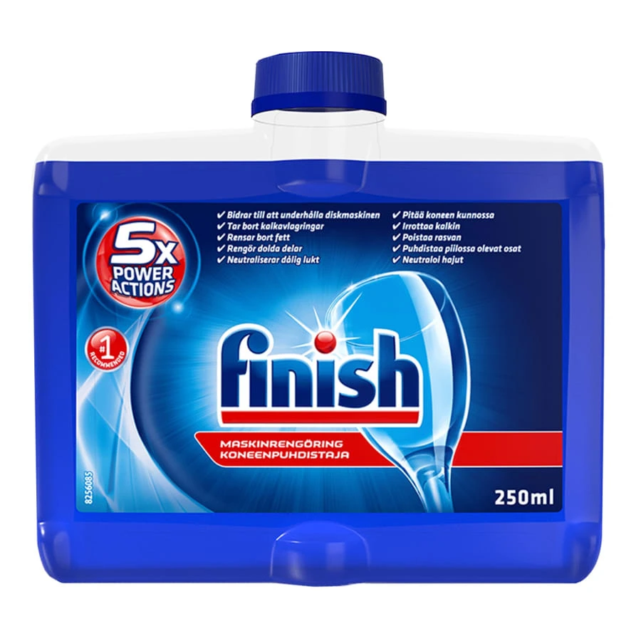 Clean your dishwasher to get sparkling clean dishes. A dirty dishwasher won’t wash dishes sparkling clean. Even if you don’t notice it, grease and lime accumulate in the most important parts of the dishwasher. Finish machine cleaner removes grease and limescale and cleans the dishwasher all over! A sparkling clean dishwasher means sparkling clean dishes. For best results use once a month!