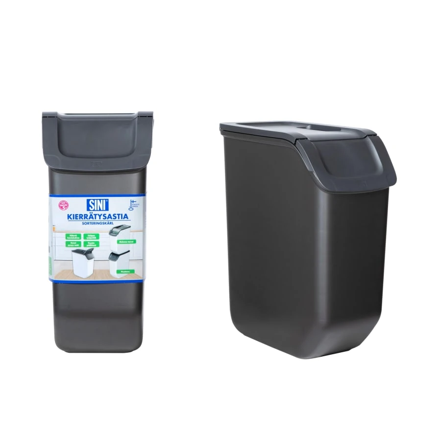 - Med locket som öppnas och förblir öppet är det enkelt att lägga in de material som ska sorteras i behållaren.