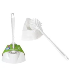The corner model of the toilet brush is convenient even in a small toilet, the triangular cup part fits right next to the wall right into the corner. The brush stand stays firmly upright. The brush part of the toilet brush is round. Assortment of colors (blue, white, gray), you cannot choose a color when ordering from the online store.