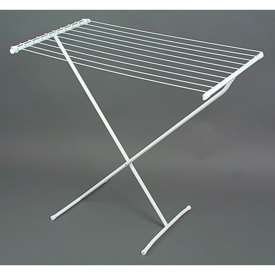 Ted is a basic light drying rack with nine meters of drying space. Fits even in tight spaces. The rack with clothes can also be lifted into the bathtub, as its legs have plastic stoppers to protect the surfaces from being scratched. The easily foldable rack takes up little space in storage.