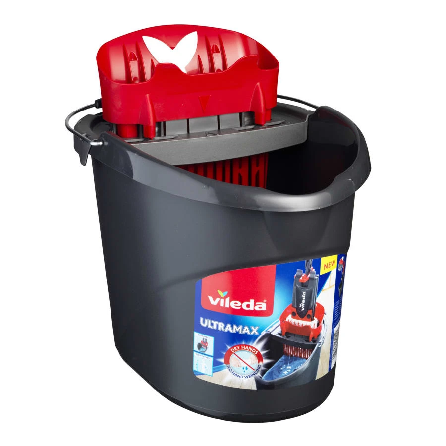 Use the Vileda UltraMax bucket & press together with the UltraMax plate frame mop, and your hands will stay clean and dry, because you don’t have to touch the mop head with your hands.